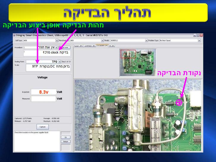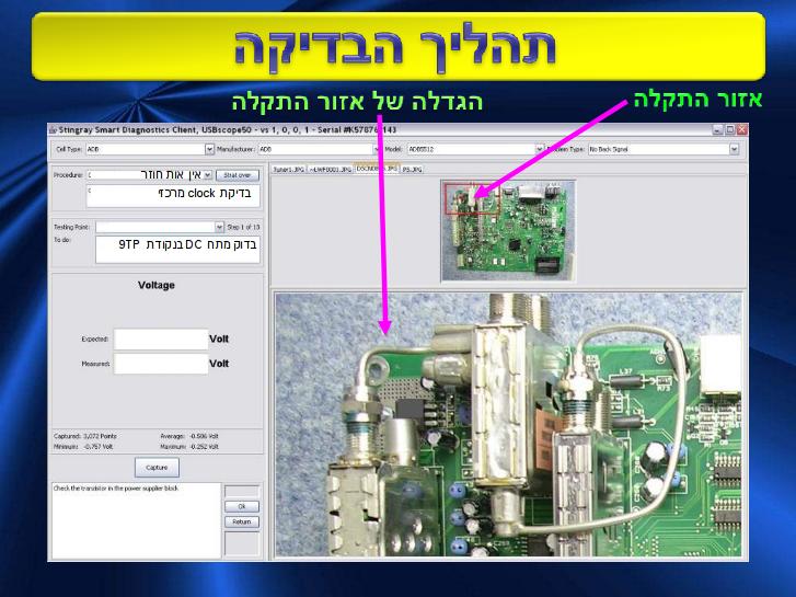 Smart Diagnostics System (SDS) enables one to locate failure and repair electronic devices using visual procedure. The SDS consists of the procedures database — SDS Data Base, software application SDS Client and Administrator and measurement unit — USB50Scope. The technician repairs the device under test, step by step according to procedure. SDS will provide the procedures for testing and repair of electronic devices for non-professional technicians. SDS internet edition enables one to use the huge database for any repairing process in the various electronic industry fields.